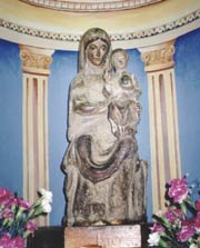 Dame de Sarrance, avec le cadre du Gave jaillissant sur les roches.